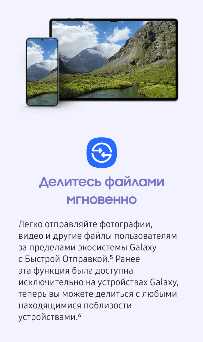 Доступно на устройствах с Android OS 10 (Q OS) или выше и One UI 2.1 или выше. Поддерживаемые ПК включают ноутбуки Samsung, в том числе на базе Qualcomm, выпущенные в 2020 году или позже, а также ПК с ОС Windows других производителей под управлением Windows 10 версии 2004 года или выше, на которых установлены драйверы Bluetooth Intel версии не ниже 22.50.02 и драйверы Wi-Fi Intel версии не ниже 22.50.07.